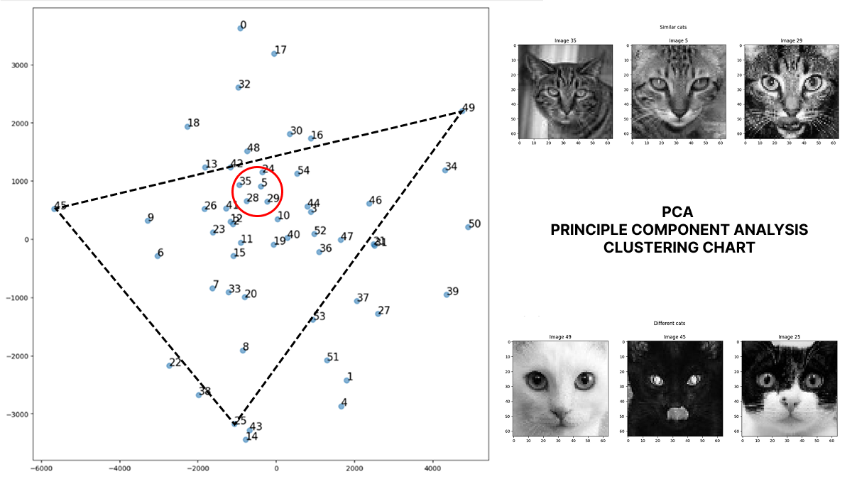 PCA Principle Component Analysis for an Image dataset including 6 different steps: